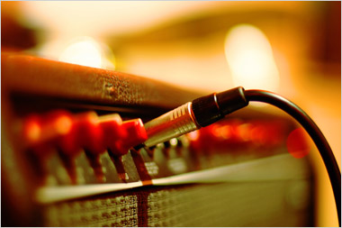 (DISTORTIONוריברב. שקע הכניסה במגבר גיטרה מודרני הוא בעובי 1/4 אינצ' והוא מקבל הזנה ממיקרופון (פיק אפ) פיאזואלקטרי שנמצא בדרך כלל בגיטרה אקוסטית או ממיקרופון אלקטרו מגנטי הנמצא בדרך כלל בגיטרה חשמלית.